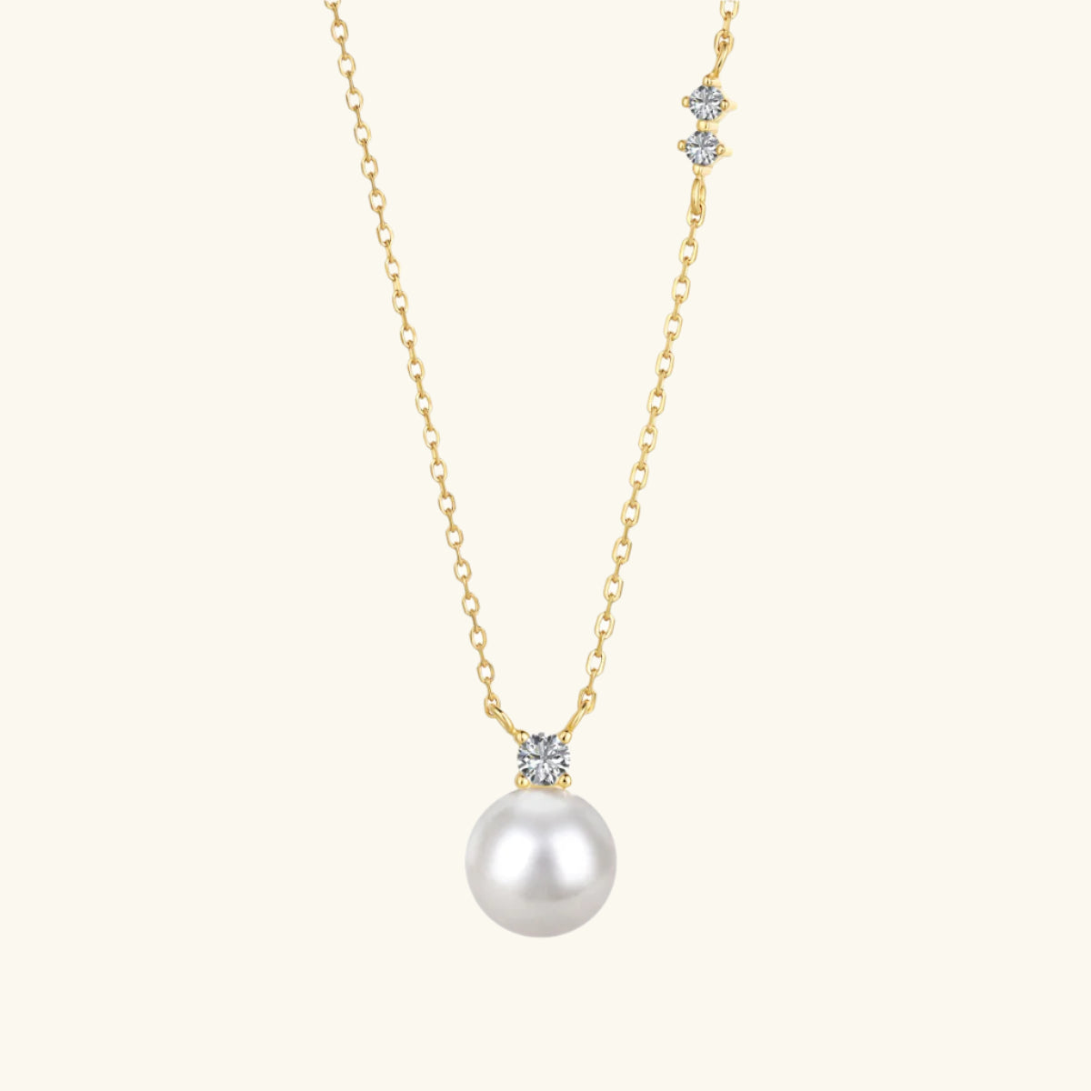 This pendant is bathed in warm 18K gold plating with a protective double coat for lasting shine. A single lustrous freshwater pearl drops beneath a bezel-set cubic zirconia stud, while two additional CZ accents nestle discreetly along the delicate cable chain. The interplay of gold, pearl and sparkle makes it an elegant statement for day or evening.
