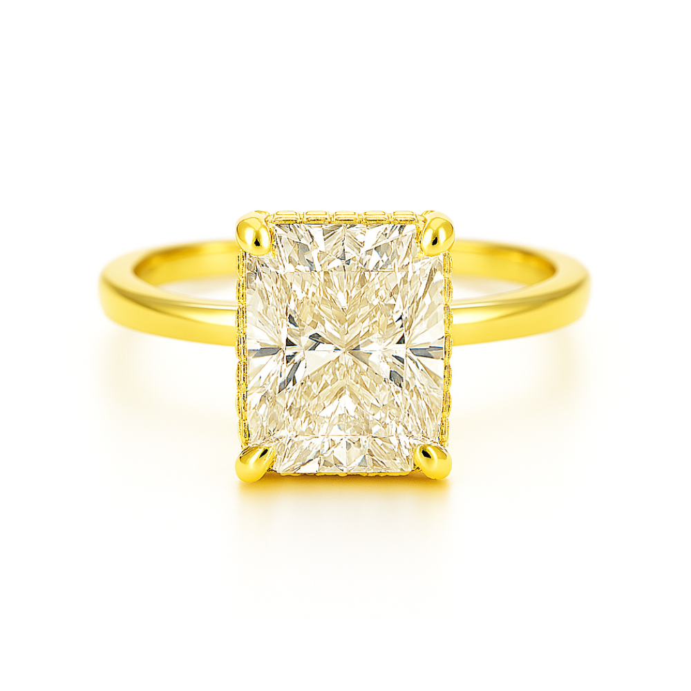 Elevate your style with this exquisite ring, featuring a dazzling “crushed ice” center stone encircled by a halo of shimmering round-cut accent stones. The radiant centerpiece catches the light from every angle, while the sleek band and bold silhouette offer a perfect fusion of modern glamour and timeless elegance. Ideal for special occasions or adding a touch of luxury to everyday wear, this ring captivates with its mesmerizing brilliance and refined detailing.